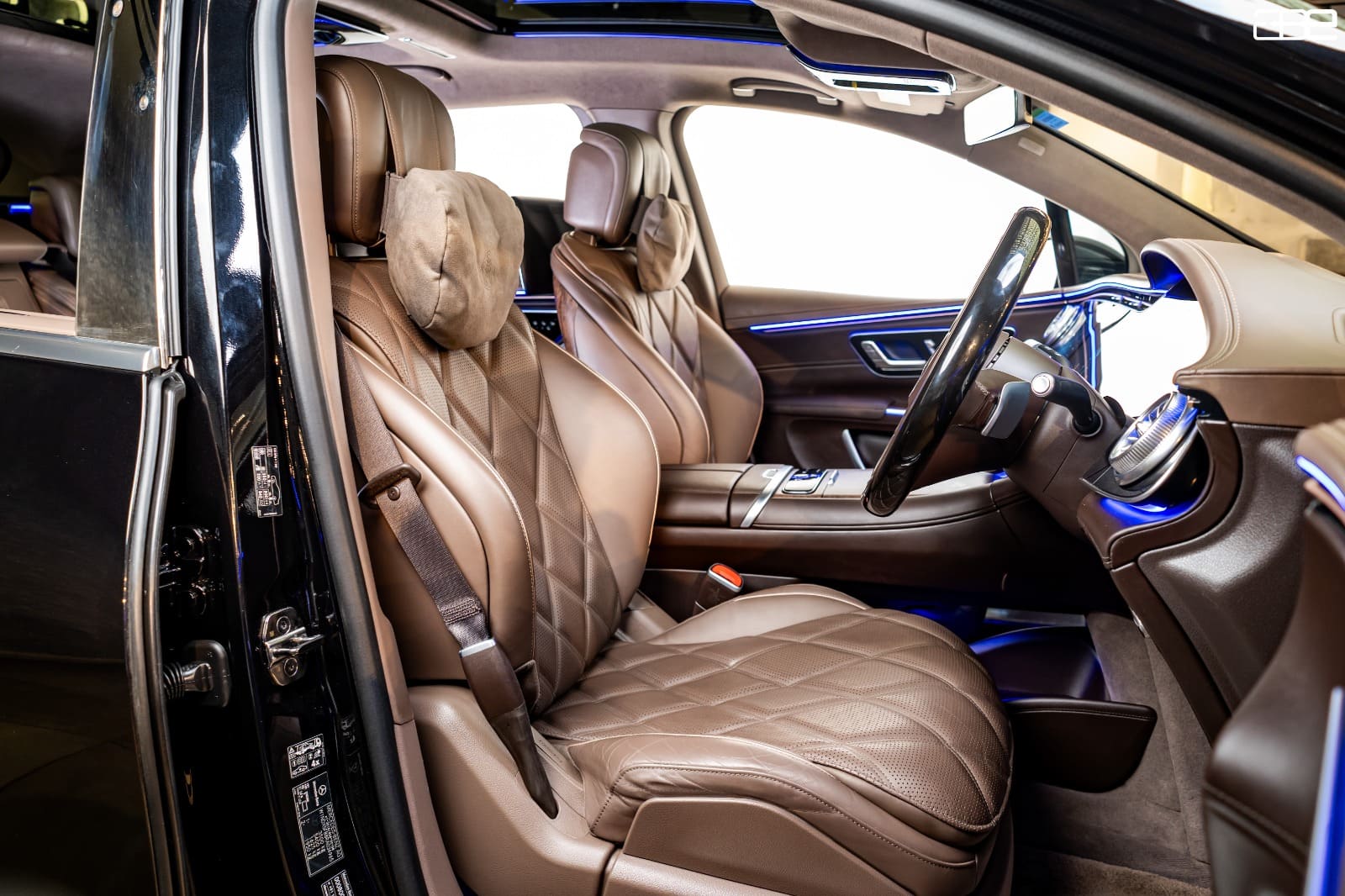 Surface to form The MBUX Hyperscreen. Brilliant OLED technology and The Intuitive Zero-Layer User Interface Meet Status-Defining Details Such as The Maybach Logo and The "MAYBACH" Display Style,